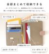 内側:カード入れ×3、フリーポケット×3、肩開きポケット×1、simカード入れ×2