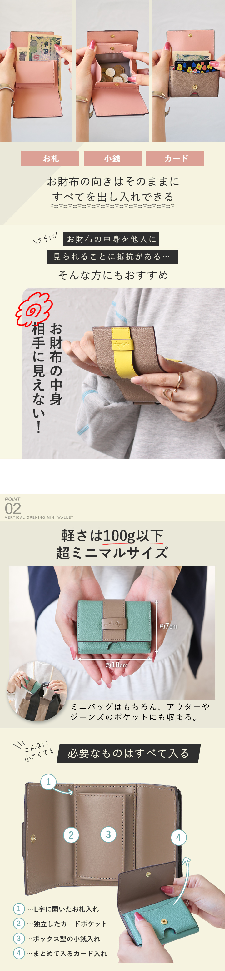 備考 同じ向きのまますべて取り出せる「時短ミニ財布」