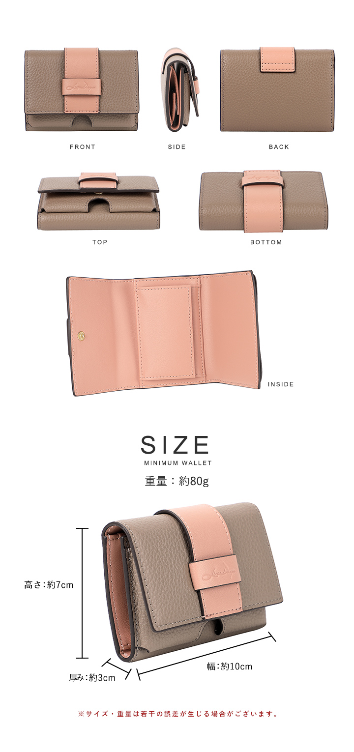 手のひらに収まる超ミニマルサイズ!お札・小銭・カードが同じ向きで出し入れしやすい本革三つ折り財布。 【送料無料】LIZDAYS/財布 小さめ ミニ財布 本革