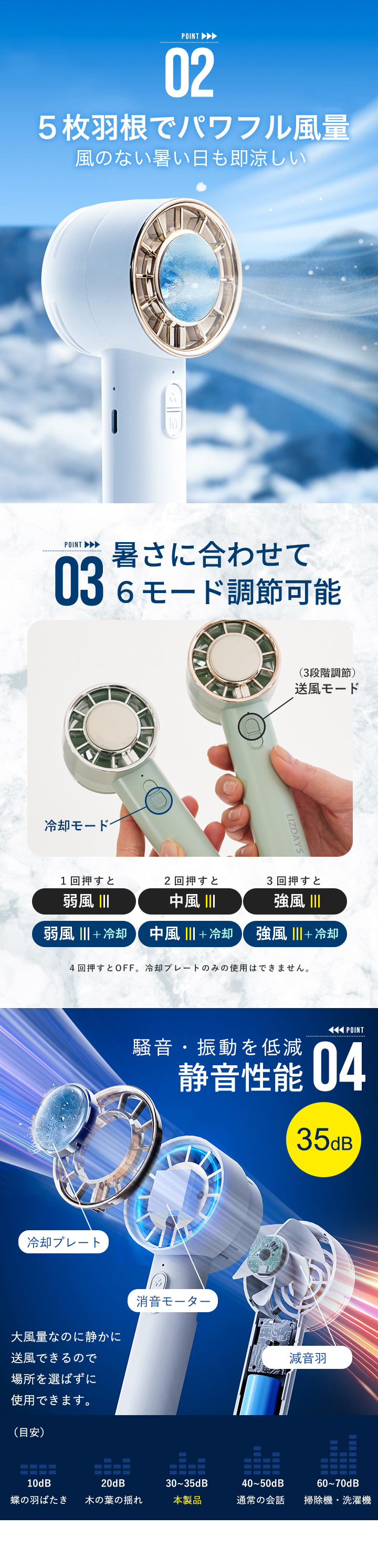暑さに合わせて6モードで調節が可能。