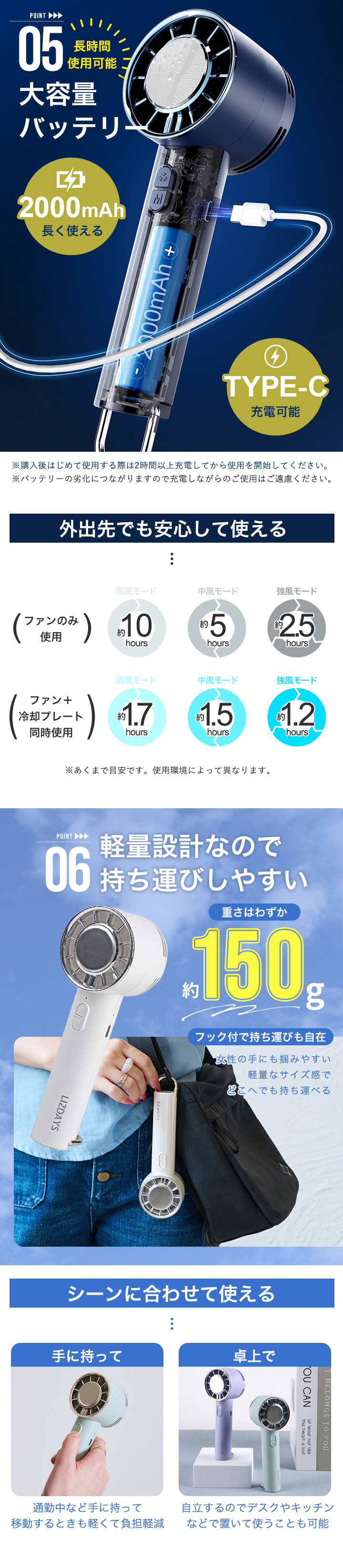気兼ねなく使える!手持ち・卓上でも使用可能。