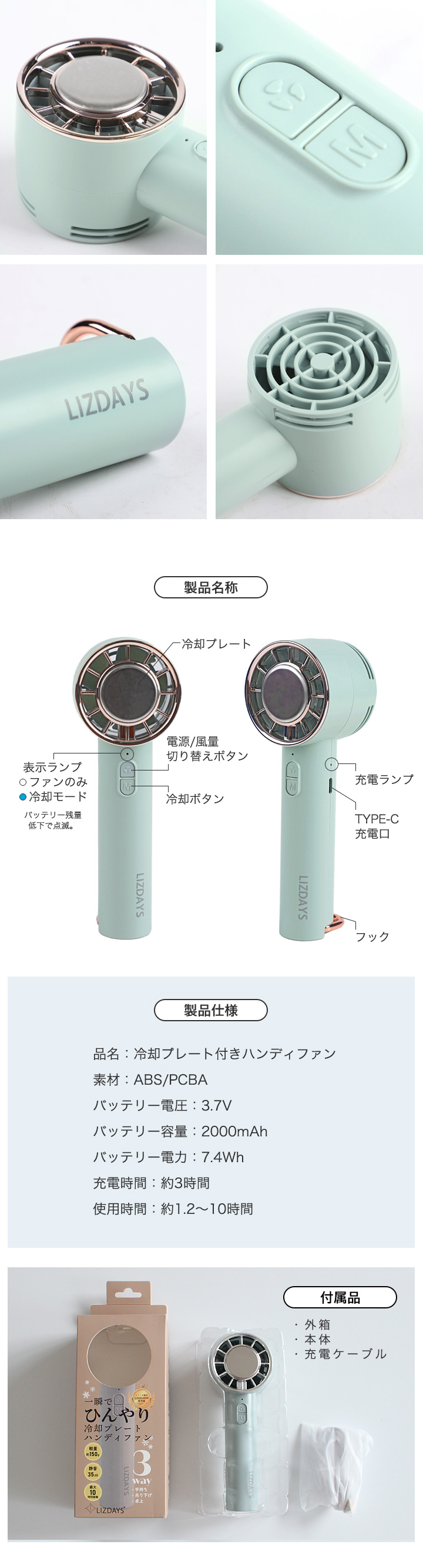 瞬間冷却のプレート付きで風だけじゃなく
