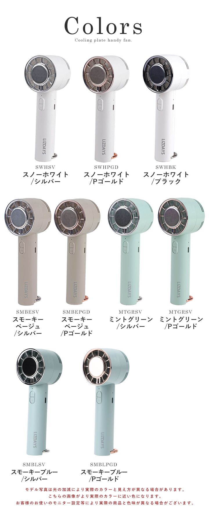 ミントグリーン/シルバー、ミントグリーン/Pゴールド