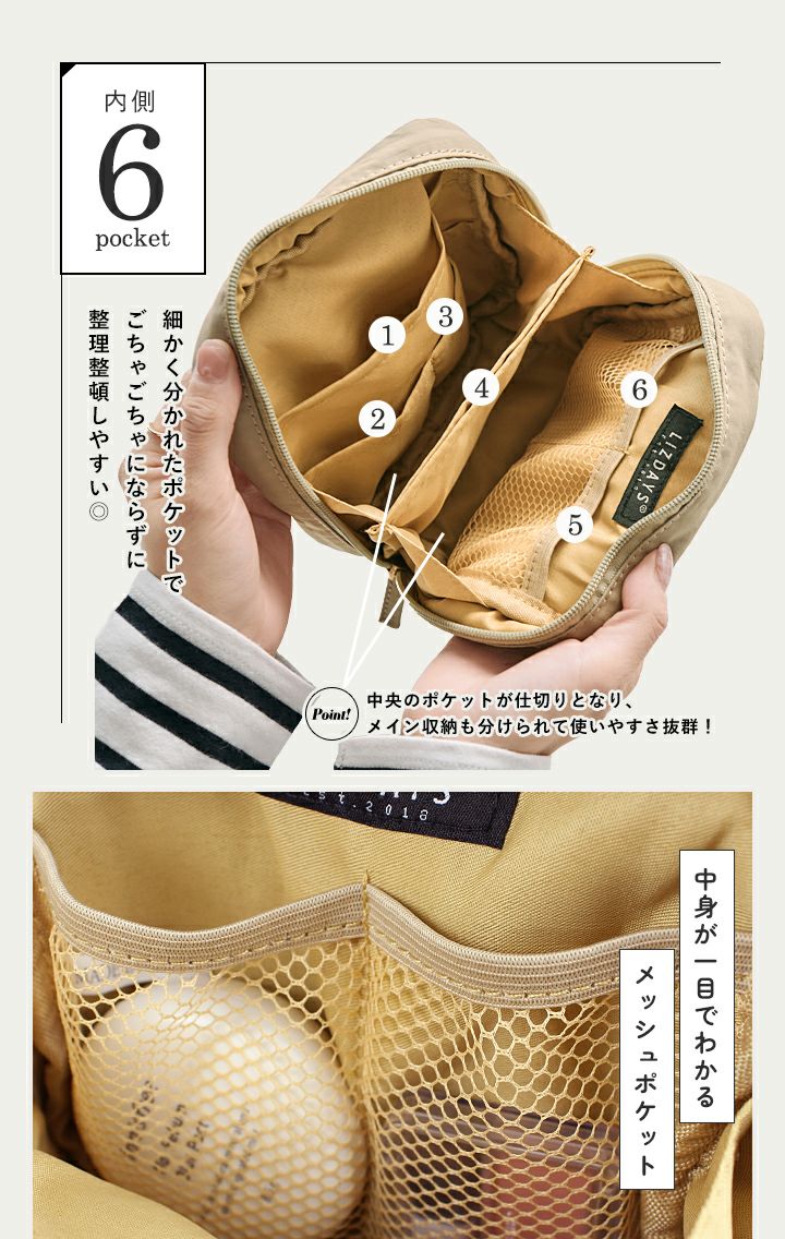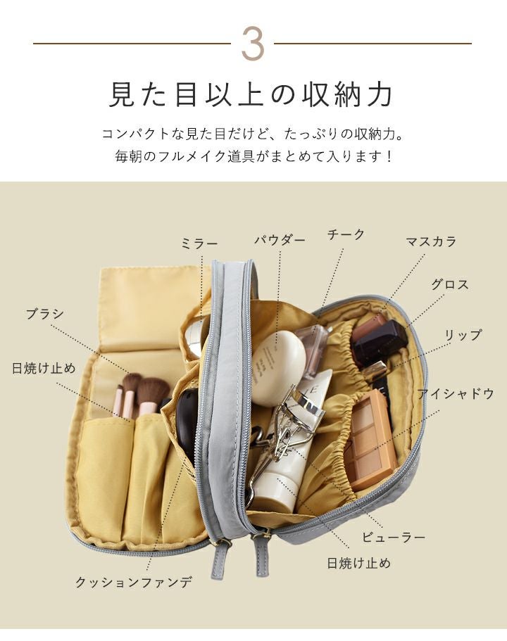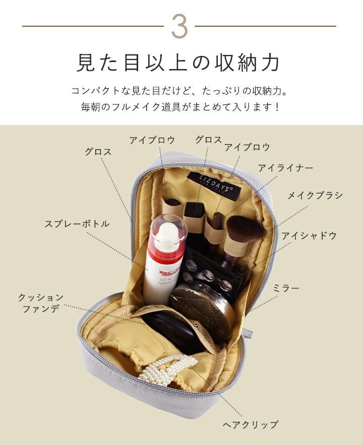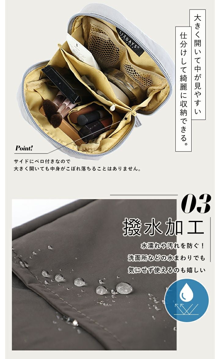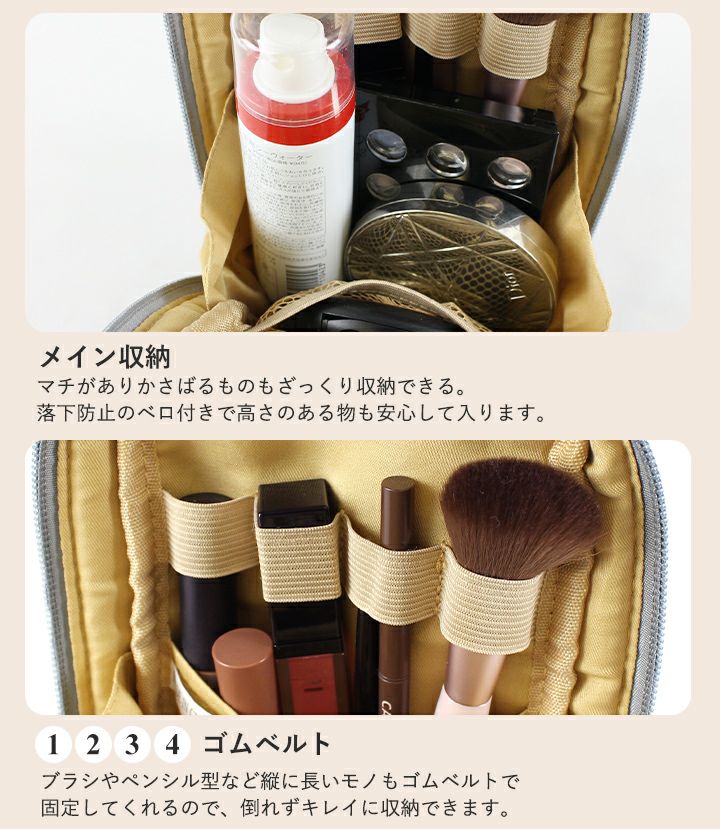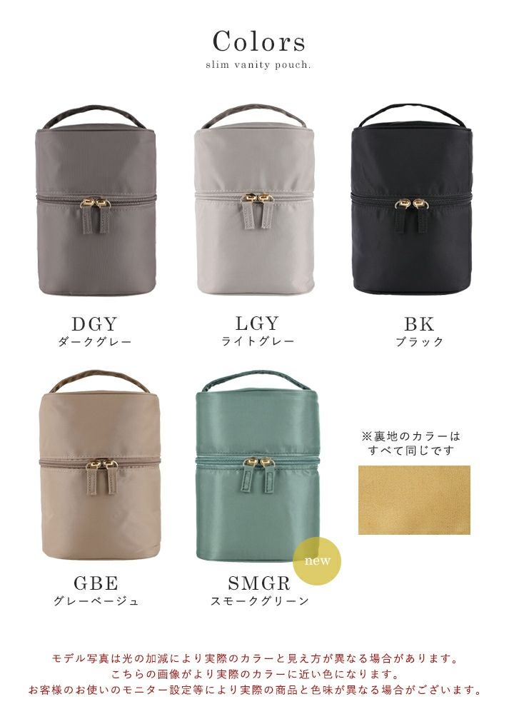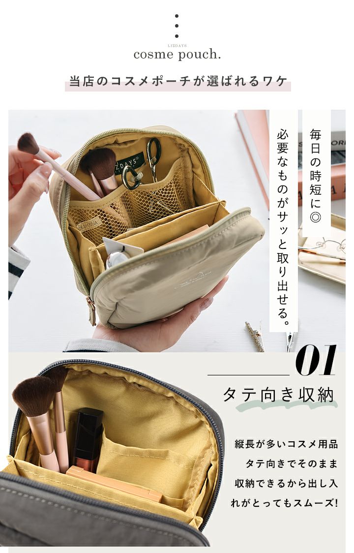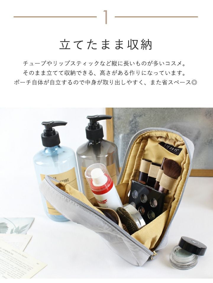 他の画像を見る 立てて収納できる!スリムな見た目でスキンケアからベースまで一式入るナイロンバニティポーチ 【送料無料】LIZDAYS/リズデイズ 化粧ポーチ 縦型 当店特別価格 ¥ 2,090 税込 会員特別価格 ¥ 2,090 税込 詳細を見る お気に入りに登録する