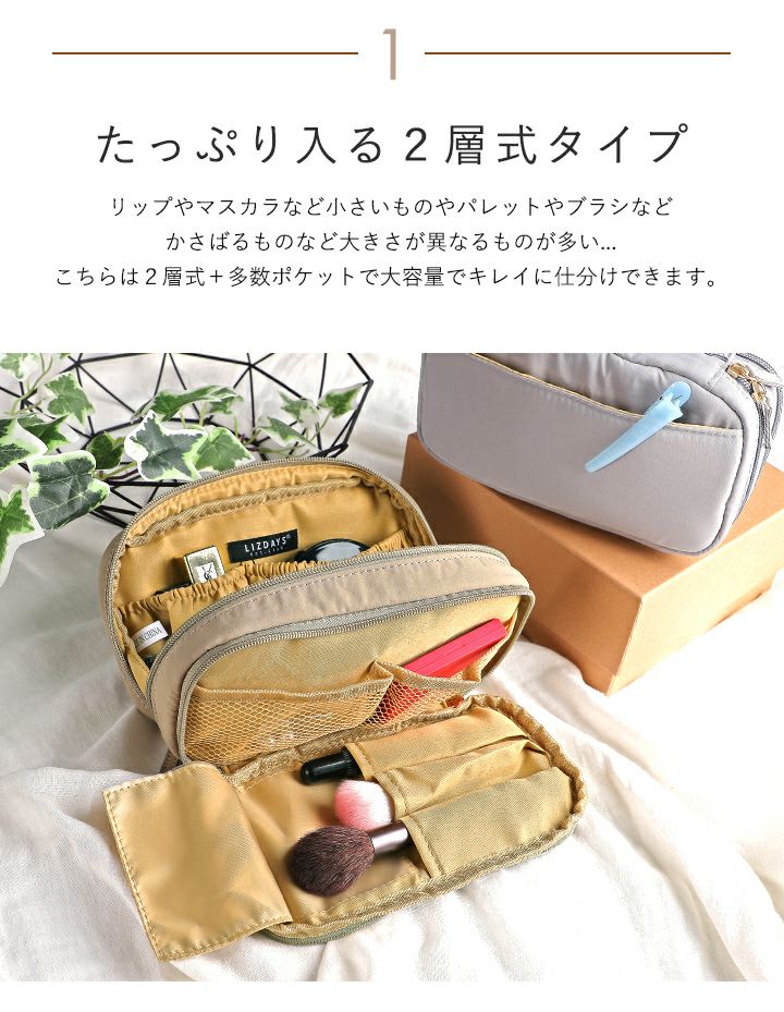 他の画像を見る 大容量でキレイに仕分けできる2層構造タイプの化粧ポーチ。ベースからブラシまで全て入るから旅行などにおすすめ 【送料無料】LIZDAYS/リズデイズ 化粧ポーチ 2層構造 当店特別価格 ¥ 2,750 税込 会員特別価格 ¥ 2,750 税込 詳細を見る お気に入りに登録する