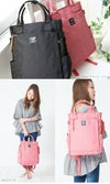 サイドポケットや背面ファスナーも付いてマザーズリュックとしても使える収納力と使い勝手の