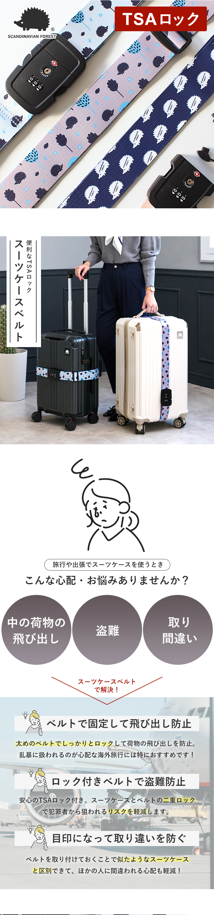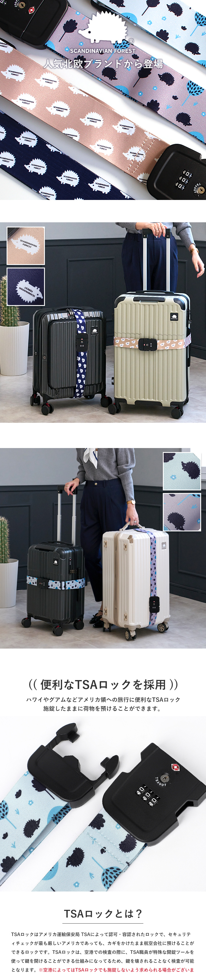 旅行に便利なTSAロックを搭載で