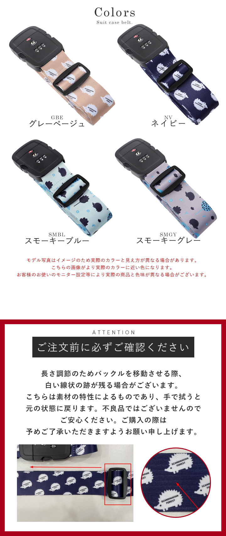 ■バックルの着脱時に指等を挟まないようご注意ください。
