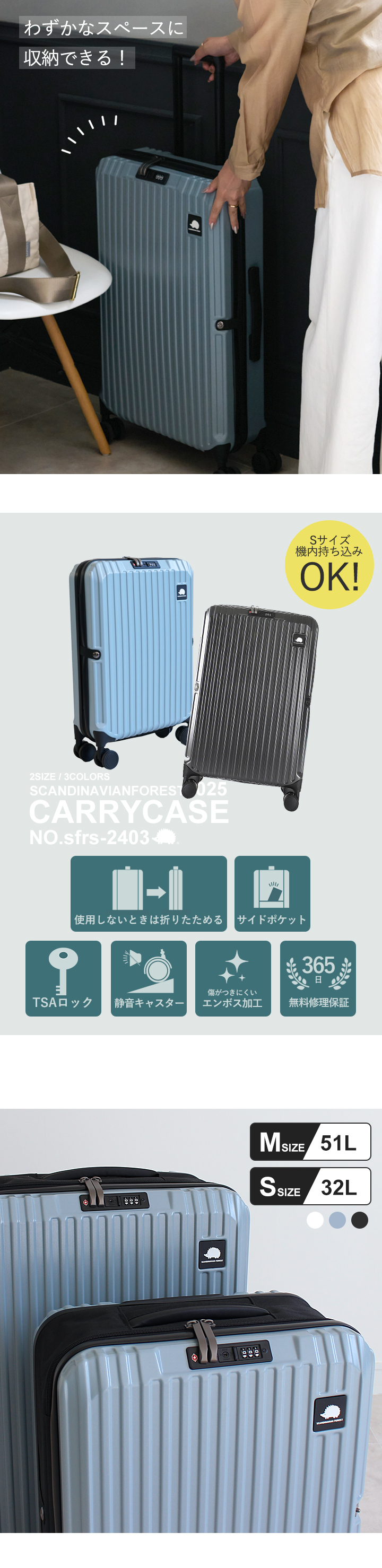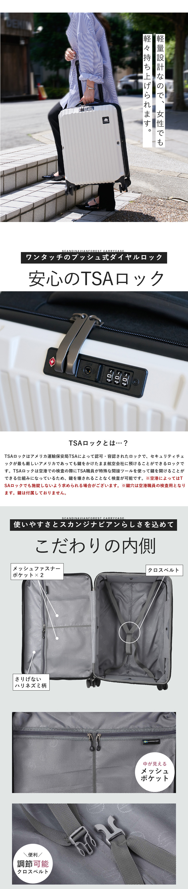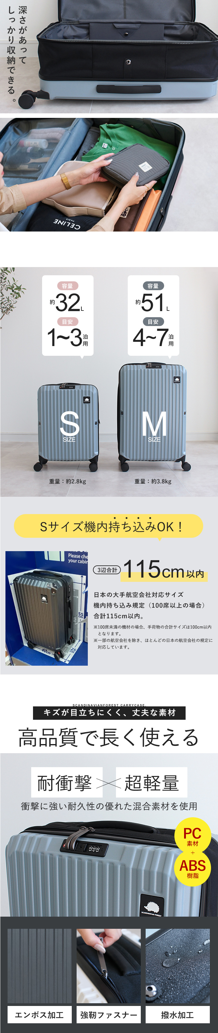 本体:ABS+PC、キャリーバー:アルミ