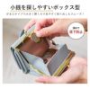 がま口タイプの小銭入れは大きく開くボックス型を採用し、