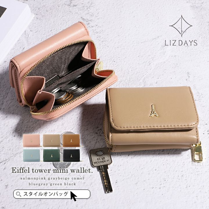 開閉:スナップボタン、ラウンドファスナー(小銭入れ)
