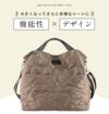 お洒落なキルティングデザインはそのままで、荷物をたくさん持ち歩く方にもぴったりな使い勝手抜群のきれいめ大人トート! 底板にICカード入れがあるので、バッグの底面をタッチするだけでスムーズに改札を通過できます◎ 500mlPETがすっぽり収まるボトルポケットを含む計9つのポケット付きで小物収納にも困りません。 ふっくらキルティングがおしゃれな高密度ナイロン生地を使用しており、撥水加工が施されているので雨の日も安心です! 上品な光沢感のあるショルダーベルトと部分使いされたPUレザーで高見えするデザインに。 普段のお出かけはもちろん、通勤通学にも使いやすく、年代問わず幅広くご愛用いただけます。