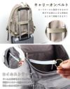 スーツケースに固定できるキャリーオンベルト付きです。