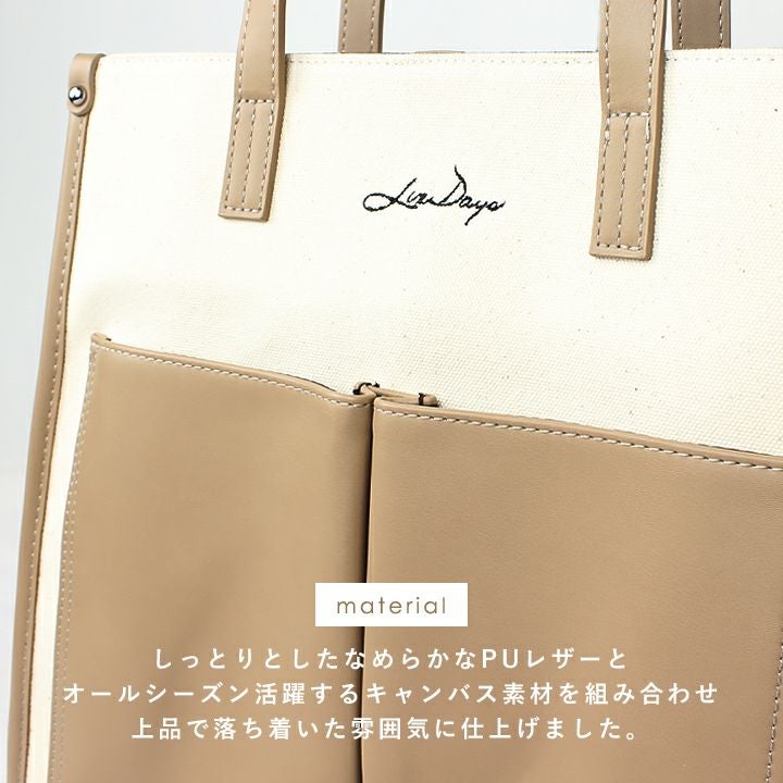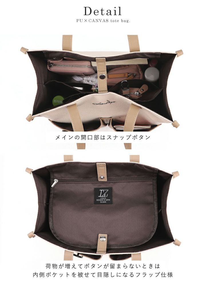 他の画像を見る LIZDAYS / キャンバス生地とPUの異素材トートバッグ、通勤・通学にも最適。 【送料無料】 LIZDAYS/リズデイズ トートバッグ 異素材 当店特別価格 ¥ 4,389 税込 会員特別価格 ¥ 4,389 税込 カートに入れる お気に入りに登録する