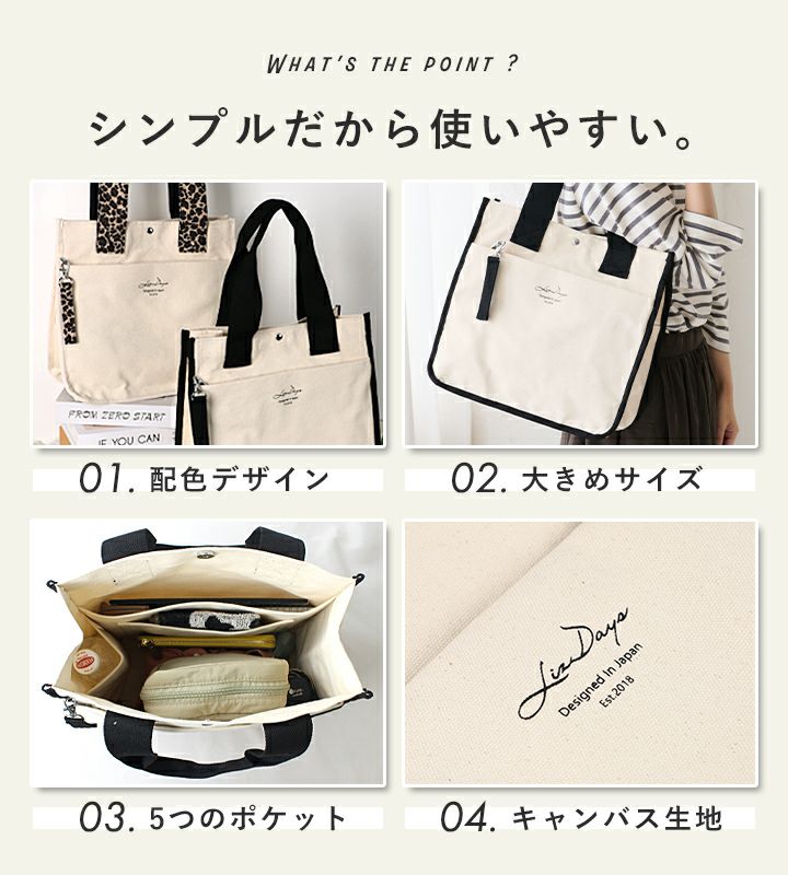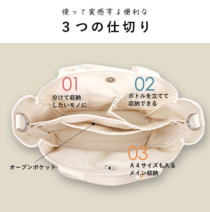 他の画像を見る 【雑誌掲載LEE5月号】3つ仕切りでバッグの中がいつでも綺麗・A4収納OK! 【送料無料】LIZDAYS リズデイズ キャンバストートバッグ 当店特別価格 ¥ 3,850 税込 会員特別価格 ¥ 3,850 税込 詳細を見る お気に入りに登録する