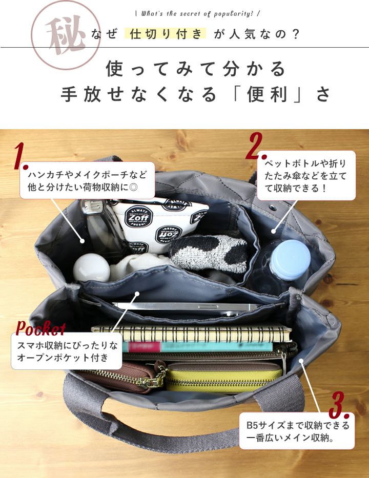 他の画像を見る 仕切り付きで誰でも整頓上手に!A4収納&撥水ナイロン生地でデイリーユースにぴったりなトートバッグ 【送料無料】 LIZDAYS/リズデイズ トートバッグ 当店特別価格 ¥ 4,730 税込 会員特別価格 ¥ 4,730 税込 カートに入れる お気に入りに登録する
