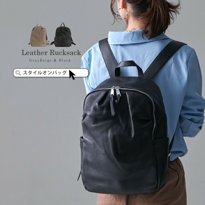 シンプルなデザインが美しい牛革リュックサック
