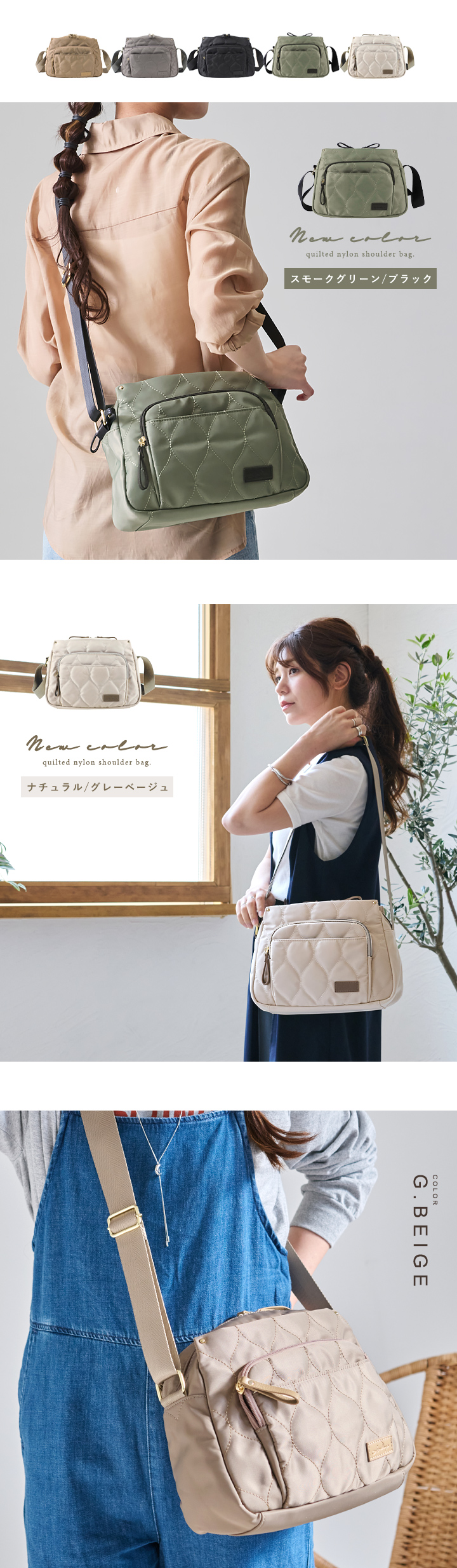 撥水キルティングのナイロンショルダー