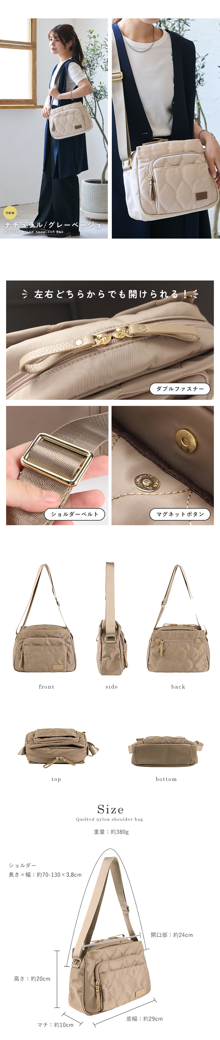 約380gの軽量バッグなので、肩への負担も軽減◎