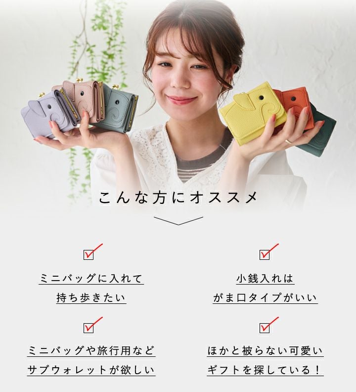 他の画像を見る 幸せの象徴ゾウさんモチーフの三つ折り財布!ミニバッグにも収まる小さめサイズ&使いやすいシンプルな設計。 【送料無料】LIZDAYS/がま口 ミニ財布 レディース ゾウ型 当店特別価格 ¥ 2,970 税込 会員特別価格 ¥ 2,970 税込 詳細を見る お気に入りに登録する