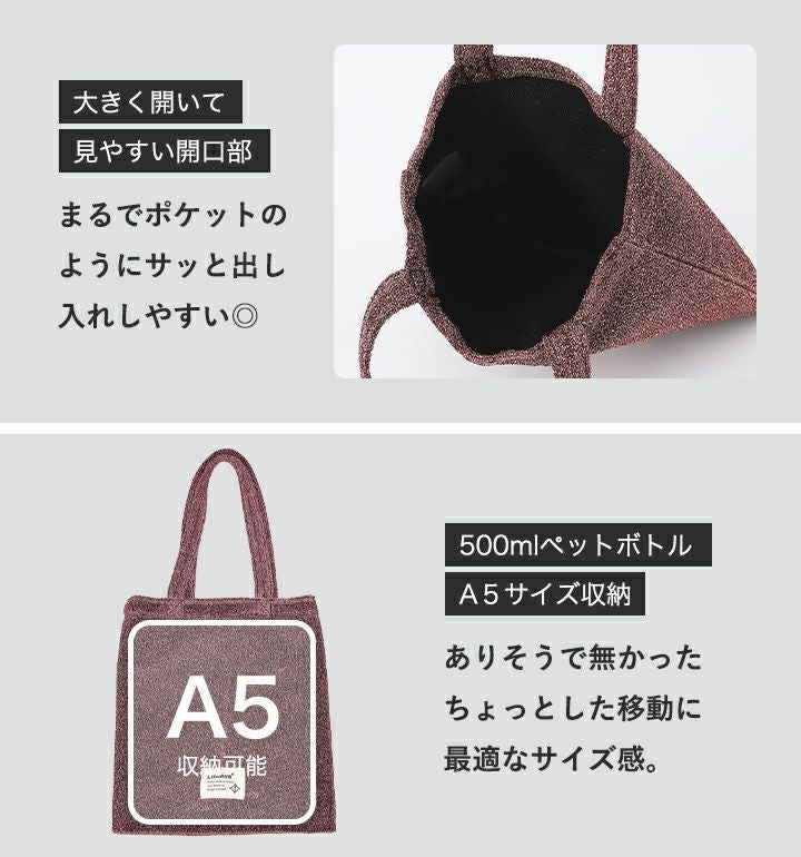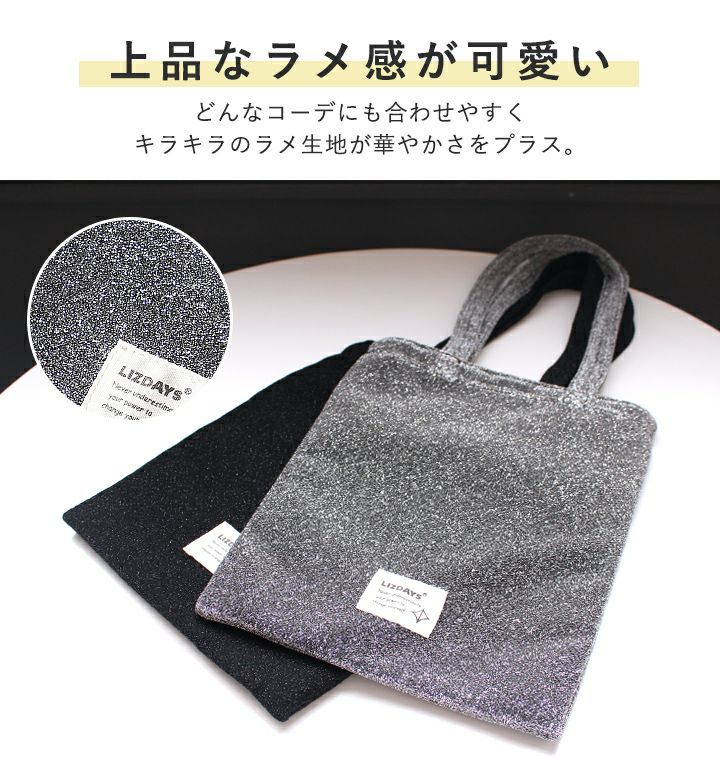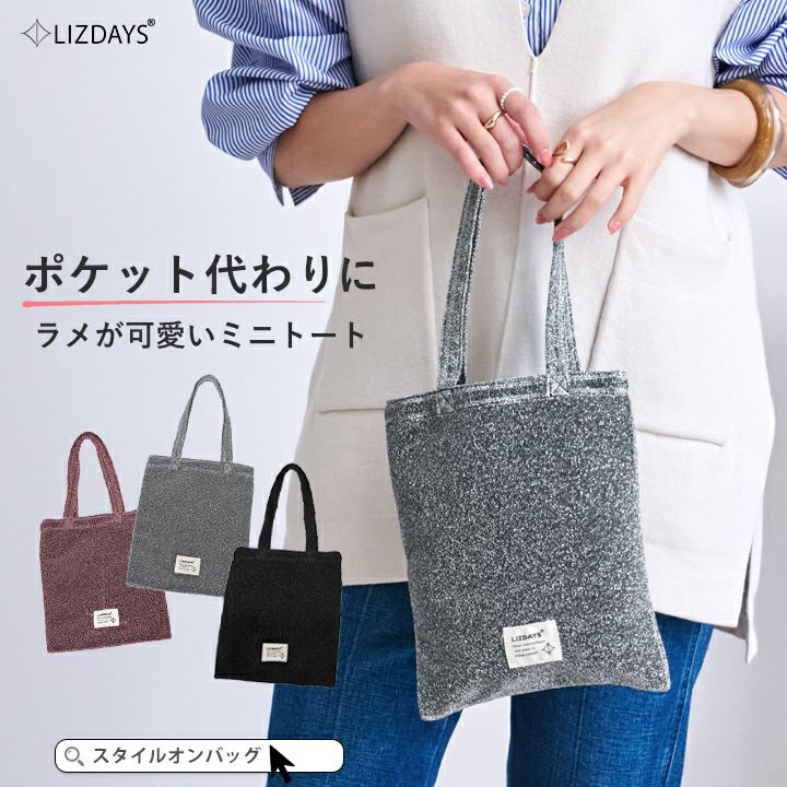 他の画像を見る ちょっとした移動に最適サイズ◎ラメ感が可愛いポケット感覚で使えるミニトート。 【送料無料】 LIZDAYS/リズデイズ トートバッグ ミニトート 軽量 当店特別価格 ¥ 1,320 税込 会員特別価格 ¥ 1,320 税込 カートに入れる お気に入りに登録する